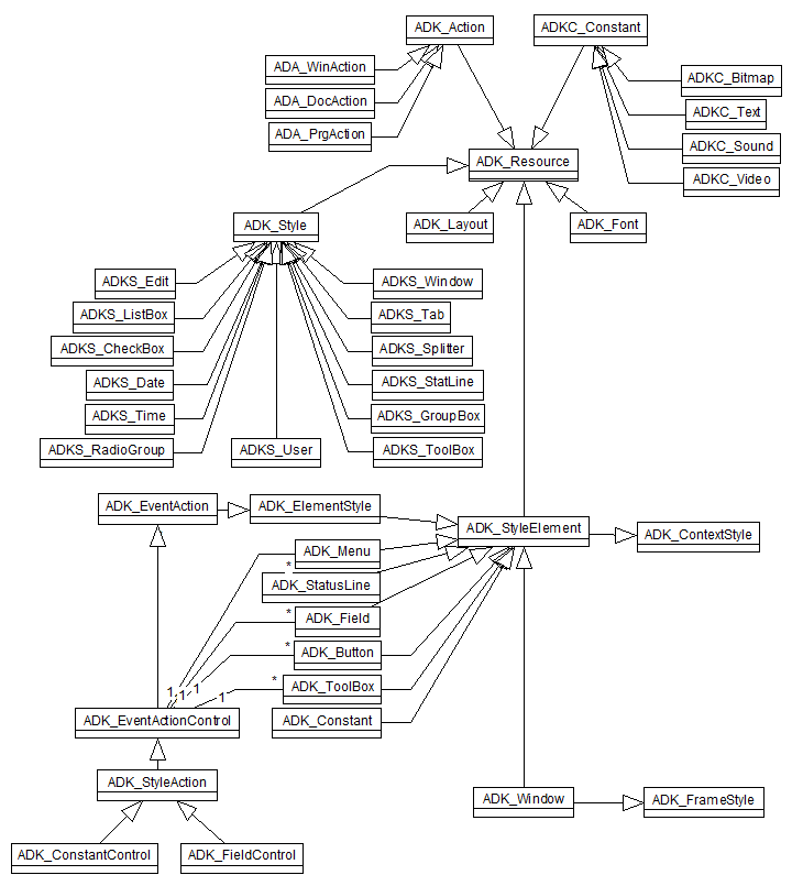 Most ADK resource objects inherit from ADK_Resource . Style objects ( ADK_Style ) are provided in order to define different control types referring to simple or complex data sources (attributes, complex instances or collections). Style elements ( ADK_StyleElement ) define the way a control with a given style will be displayed.