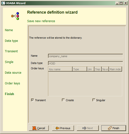 For defining a transient reference, the reference type transient reference has to be selected. The Next button directly leads to the definition summary.