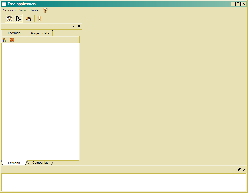 The sample contains two tree controls arranged in a tab ( Main :: application_trees ). In the test mode one may check the design elements (switching tabs, resizing etc.), but you cannot enter data. In order to access data, data sources assigned to controls have to be set.