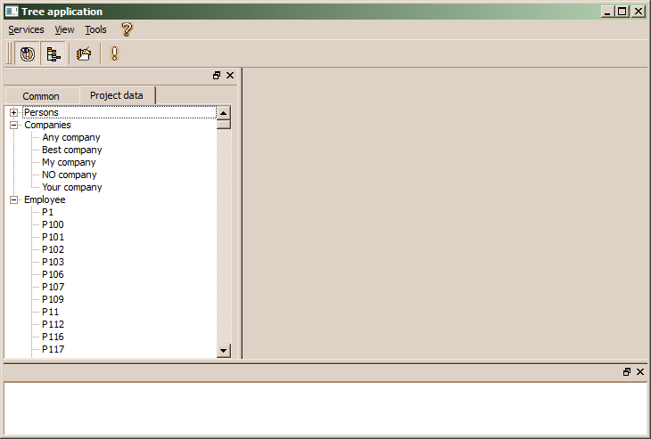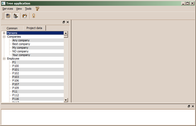 The tree/list context menu provides the standard functionality supported for the tree without application context library, When running the application after the application context library has been created, the application looks a bit different: