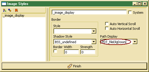 The Path Display option allows selecting the position for path edit line. For not displaying a path edit line, PDT_undefined has to be selected. When displaying a path edit line with file dialog button, the file dialog button allows popping up with a file dialog for selecting an image file. When the image data source is a BLOB property (or not a text property), no path edit line will be displayed regardless on the path display type.